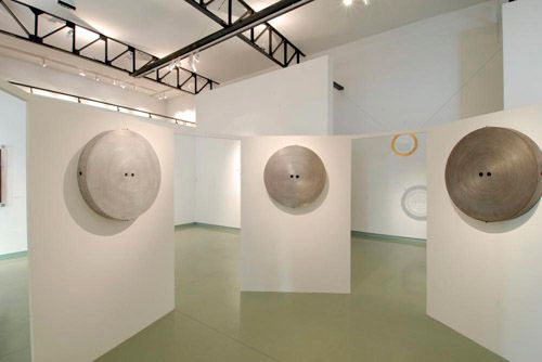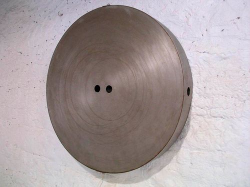 2007 - ESPACE ANDRÉ MALRAUX, COLMAR « Symphonie des métaux » Installation visuelle et sonore Installations, objets, dessins. « Résonance » 2006, dia. 80, p.10 cm, cuivre, inox, aluminium, laiton, acier. En regardant dans le tambour, le métal résonne. Suivant le nombre de tambours activés, les métaux s’harmonisent, orchestrés par la présence des regards. La surface du métal semble garder une trace de cet écho.…