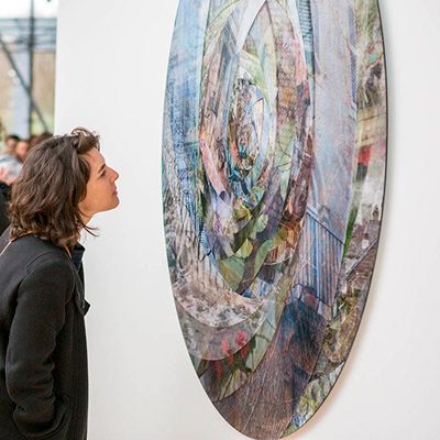 Mémoscope 2012, diamètre 150 cm Cette métaphore de l’iris concentre l’infinité des images enregistrées par mon œil au cours de la vie, tel un autoportrait subjectif. Depuis des années, mes projets naissent d’une fascination pour le regard, liée à l’observation de l’iris comme fenêtre ouverte sur l’âme. Cette approche m’a conduite progressivement à la photographie, comme prolongement évident de mes recherches sur l’optique. « Voir », c’est « regarder » à travers un filtre. Mon travail photographique est étroitement lié à la qualité de perception et de réception de l’environnement. Les œuvres proposent de s’immerger dans le milieu à découvrir, de s’imprégner des choses qui nous entourent, de puiser à la source des substances qui composent notre environnement. L’œil de l’appareil photographique, le diaphragme, plonge ainsi dans les éléments pour en distiller les essences particulières. Ouvrir les yeux est une opération très simple dont le but est de laisser entrer le réel en soi. Ainsi, les œuvres nous invitent à expérimenter un aller-retour permanent entre notre intérieur et notre perception qui nous permet de nous ouvrir sur le monde. Si l’on papillonne des paupières environ 24 000 fois par jour, c’est certes pour humidifier nos yeux, mais aussi pour reprendre notre mesure intérieure.…